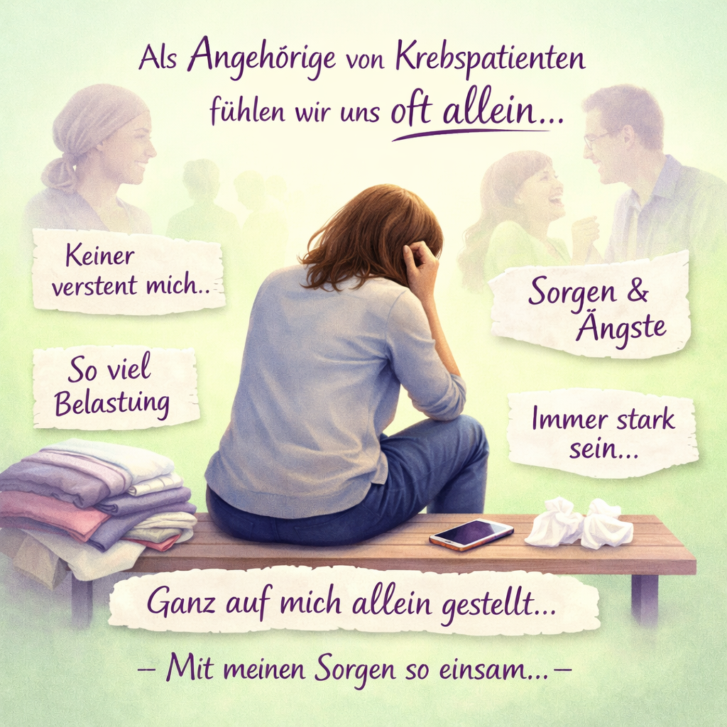 als Angehörige von Krebspatienten haben wir viel zu bewältigen. Oft haben wir das Gefühl, wir stehen alleine da mit unseren Problemen, Sorgen und Nöten. Den Alltag sollen wir auch noch bewältigen und dabei immer gut drauf sein. Und während all dem haben wir oft das Gefühl, alleine zu sein. Dass uns keiner so richtig Versteht, dass wir oft verzweifelt sind und trotzdem stark sein müssen